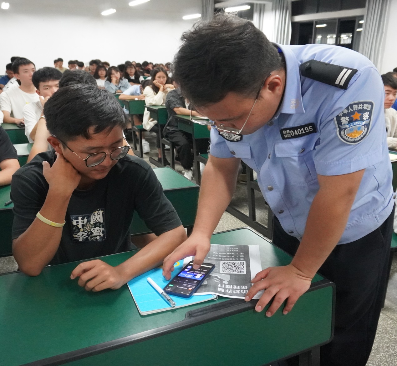 宣讲会议主要从防电信诈骗、校园安全及打架斗殴、“金钟罩”小程序的安装注册四个方面进行宣讲。会议开始,主讲民警们结合工作中的真实案例,围绕常见的诈骗手段和方法,如刷单、贷款、网恋、网上赌博、利用银行卡洗钱、QQ、微信诈骗、“猜猜我是谁”、购物诈骗等方面进行了详细地阐述,并就其中的具体环节进行了解释,要求大家要擦亮眼睛,谨防诈骗。此外,他们还讲到了生活安全,如火灾、地震、食物中毒、交通安全等。接着,民警们结合校园内的真实打架斗殴案例,再次重申在校期间,严禁大家饮酒,以免引起不必要的麻烦,危害自身和他人安全。最后,在阳宗派出所民警的指导下,在场学生成功安装并注册了“金钟罩”反诈骗预警系统,并就其使用说明进行了介绍。