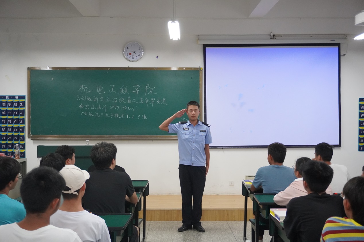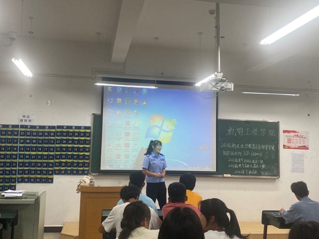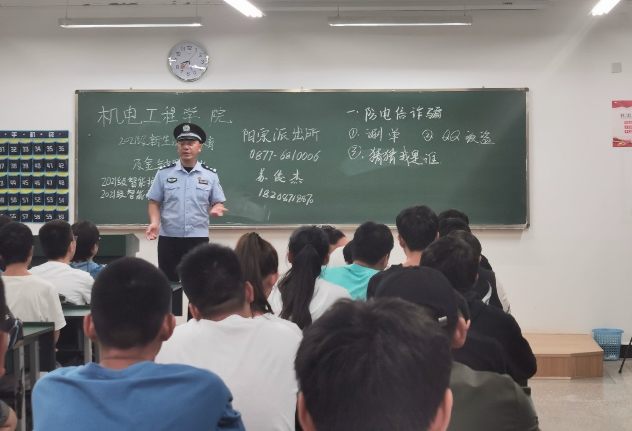 为做牢、做实校园安全工作,提高机电学子的安全防范意识,真正为学生办实事,BEAT365英国官网在学校保卫处的带领下,于9月16日18:50在崇实楼、笃行楼教室针对2021级全体新生,开展了法制教育及“金钟罩”的安装指导。本次宣传教育讲座有幸邀请到阳宗派出所的10余名工作民警进行现场宣讲,BEAT365英国官网党总支书记王春莲、副书记陈伟及全体辅导员老师共同组织并配合宣传。