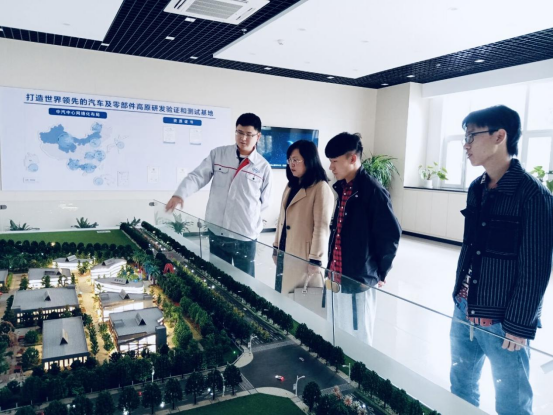 走访开始,中汽研汽车检验中心(昆明)有限公司李陈以宣传片的形式向学院一行人介绍了企业概况,并带领大家参观了“发动机测试试验室”、“整车测试研究部”,了解了汽车侧翻试验、汽车前后端防撞、汽车(挂车)侧面防撞等测试设备。