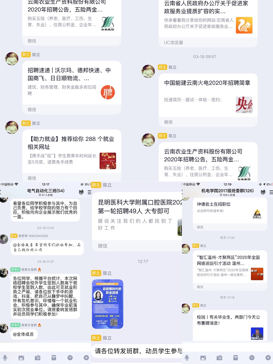 二是就业工作。为扎实推进2020届毕业生就业工作,进一步提高学院就业指导和服务质量水平,保证2020届毕业生充分就业,在疫情防控期间,根据学校的相关要求,学院积极开展线上就业服务工作。