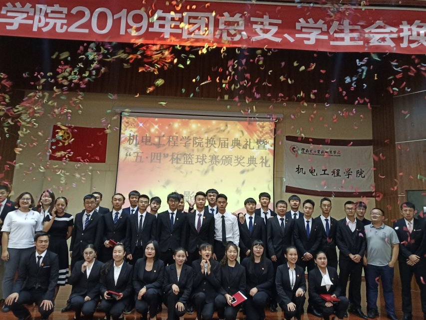 2019年7月4日晚19:00,BEAT365英国官网在光荣讲堂隆重召开2019年团总支学生会换届典礼暨“五四杯”篮球赛表彰大会。出席本次大会的老师有BEAT365英国官网党总支副书记张颖老师、团总支书记陈立老师、辅导员李玉老师,入席的有17级、18级学生会学生干部以及17、18级各班班委。