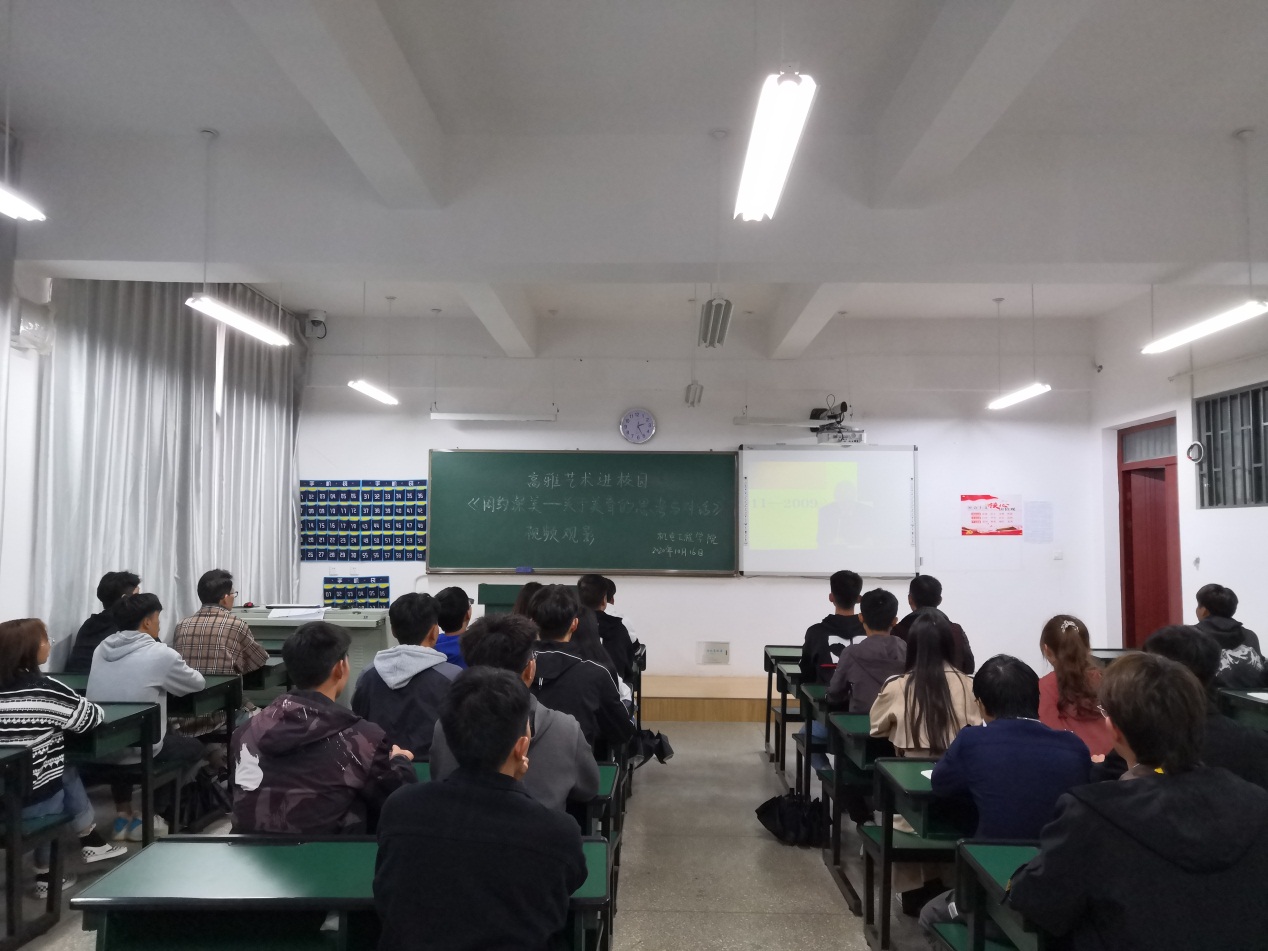 美育教学,不仅能提高当代大学生的文化素养,也对弘扬传统文化,提高国民素质有重要的意义。本次高雅艺术进校园名师大讲堂活动的推行培养了我校学生健康的审美观,引导我院学生善于发现美、寻找美、创造美、传播美;除此之外,我们也应杜绝“美盲现象”,用真正审美的眼光来看待身边的人和事物,做有文化有内涵的大学生。