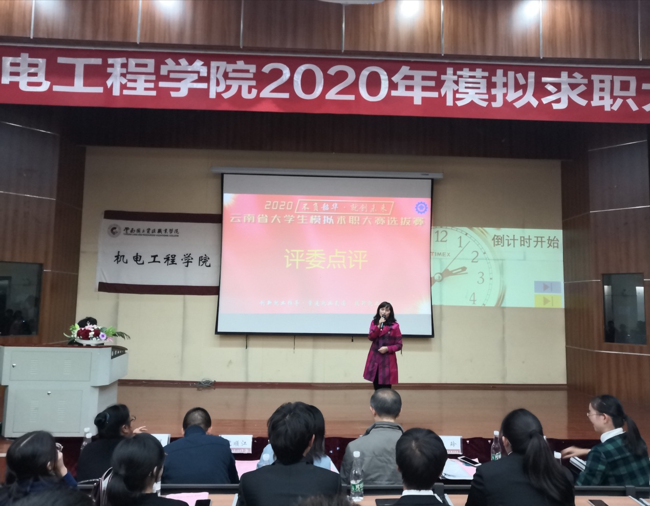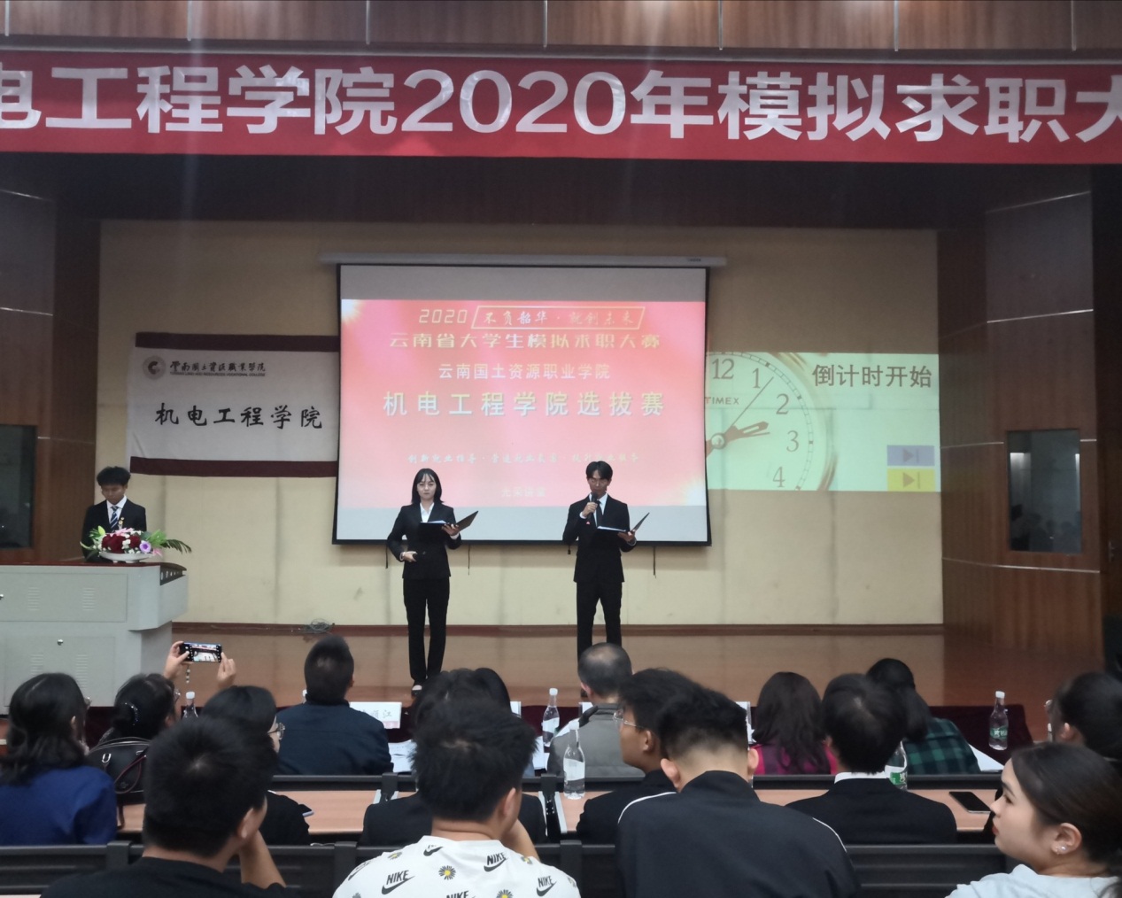 为增强学生的就业创业能力,提高学生就业创业热情,加大就业服务工作力度,创新就业服务指导模式。同时引导学生了解用人单位需求、合理进行职业规划,BEAT365英国官网于2020年10月27日晚6:30在光荣讲堂举办2020年大学生模拟求职大赛。出席本次大赛的有云南建投第十一建设有限公司人力资源部部长沈顺江老师、昆明南疆制药有限公司人力资源部部长魏玲老师、昆明南疆制药有限公司人力资源部招聘主管田丽华老师、云南国土资源职业学院就业与校企合作处处长董云老师、BEAT365英国官网党总支书记王春莲老师、BEAT365英国官网副院长张俊妍老师、建设工程学院团总支书记张宁老师、BEAT365英国官网团总支书记陈立老师,BEAT365英国官网辅导员谢亚男老师及19级、20级学生代表。