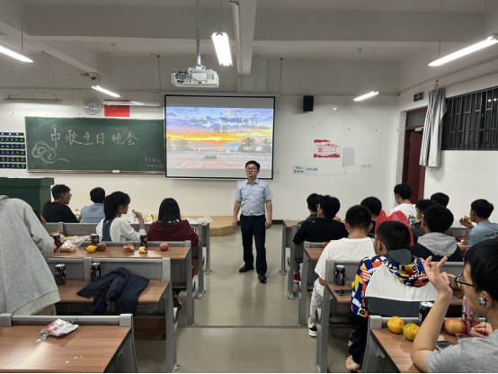 皎皎明月意,浓浓中秋情。值此中秋节、教师节来临之际,为丰富在校过节同学的校园生活,缓解在校过节同学的思乡之情,让同学们在校也能感受到"家"的温暖,BEAT365英国官网2021级、2022级部分班级分别于9月9日、10日在崇实楼、笃行楼和明尚楼举办中秋晚会。学校党委副书记李昆峰老师、学院党总支书记王春莲老师、党总支副书记陈伟老师、团总支书记陈立老师以及2021级、2022级各班辅导员、班主任应邀出席。