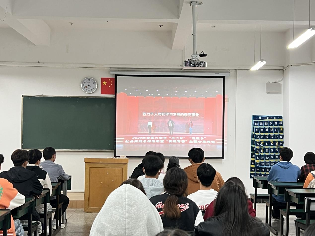 为深入学习贯彻习近平新时代中国特色社会主义思想和党的二十大精神,倡导学生做有理想、敢担当、能吃苦、肯奋斗的新时代青年,BEAT365英国官网于12月14日、12月15日晚上分别组织学生观看2023年全国大学生“三下乡”“返家乡”社会实践总结活动暨“实践青春”主题分享活动。本次活动采用线上线下观看方式进行,学生可根据自己的实际情况,选择集中观看或自行观看。