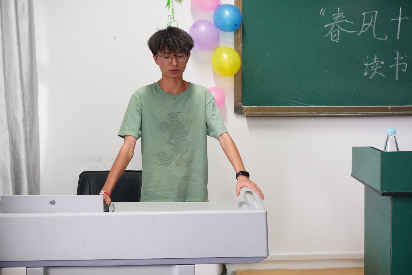 读书分享会在轻松活跃的氛围中进行,一场思维火花和心灵体悟的激情碰撞就此展开。分享者化身“说书人”,他们或娓娓道来,或激情四射,将自己的理解与感悟融入其中。同学们推荐的书籍各式各样,包括《三体》《活着》《围城》《孙子兵法》等名著。在推荐这些书籍的时候,同学们不仅看到了分享者对书本内容的充分理解,也看到了他们对社会、历史、情感的关注和思考。