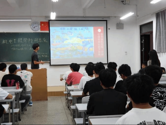 随后,团支书徐玉锦巧妙地安排了数位在“挑战杯”及“互联网+”大赛中脱颖而出的同学进行心得分享。他们不仅讲述了项目研发过程中的挑战与突破,还分享了创新思维的火花如何在实践中点燃,并转化为实际成果的感人故事。这些同学的亲身经历如同一盏盏明灯,照亮了科技创新的道路。