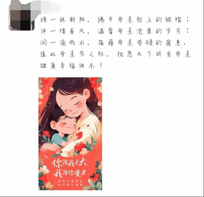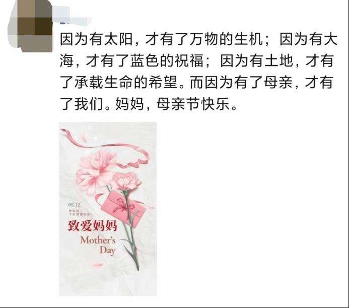 在这个温暖的五月,在第111个“母亲节”到来之际,来吧,跟随小电一起来看看我院师生的母亲节美好祝福!