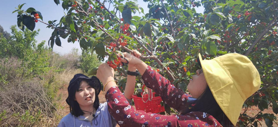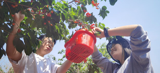 胡家庄的村民们大多以种植樱桃为主,但收入来源却并不可观,难以维持家里的正常开支。在我院师生抵达目的地后,胡家庄负责人热情地带领我们进入贫困户的樱桃园内,给大家介绍樱桃园的分布情况,并说明此户人家的现状。采摘过程中,张俊妍同志关切地向胡家庄负责人了解当地群众的具体生活状况,并达成一致意见,将胡家庄作为我院定点扶贫的对象。随后,我院老师带领同学们,在烈日炎炎下,帮助村民们采摘樱桃,并积极在社交平台上给胡家庄樱桃做推广宣传,鼓励我校师生前往。
