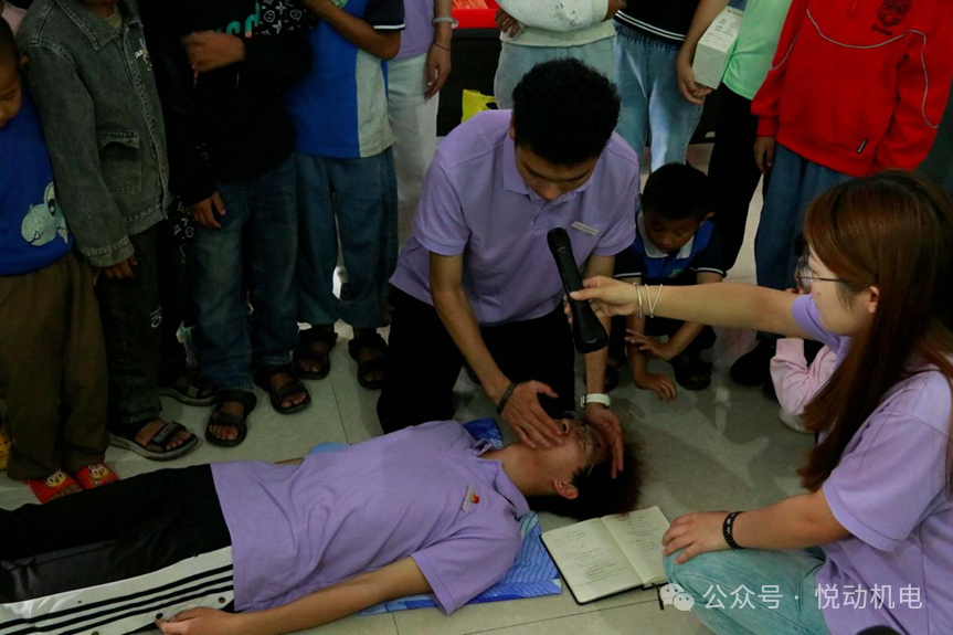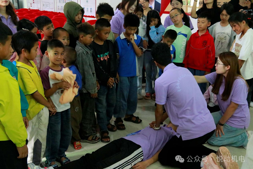 活动以实用科普拉开序幕。BEAT365英国官网建筑消防技术专业志愿者讲解消防安全知识,现场示范心肺复苏操作,从按压位置到力度节奏,手把手指导孩子们练习,帮助他们掌握基础急救技能。