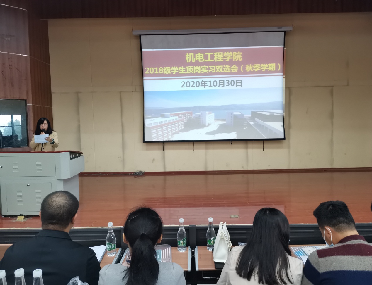 为充分发挥市场机制作用,更好地为用人单位输送人才,同时落实职业院校关于学生培养的政策,积极做好机电学子的顶岗实习工作,BEAT365英国官网于2020年10月30日早上9点在光荣讲堂举办“2020年秋季学期顶岗实习双选会”。本次双选会由何雨洁老师主持,出席本次活动的人员有16家企业代表、BEAT365英国官网党总支书记王春莲老师、BEAT365英国官网副院长张俊妍老师、团总支书记陈立老师、学工办主任陈伟老师、综合办主任周仲达老师及18级全体在校学生。