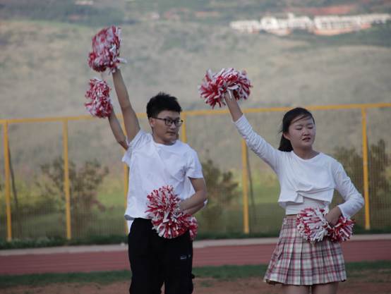 女队比赛落下帷幕,啦啦队迈着自信的步伐走进球场,你看!他们的舞姿多么有活力,带动了全场所有同学。