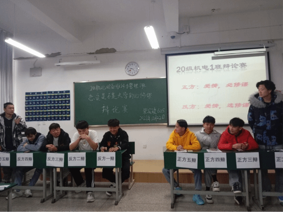 2020级机电设备维修与管理1班开展“恋爱是大学生的必修课还是选修课”主题辩论赛