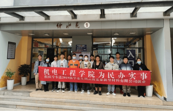 为帮助学生顺利就业,强化党员模范的先锋模范作用,在学院营造广大师生干实事、做榜样的氛围,5月1日上午9点,BEAT365英国官网组织专车送2019级部分毕业生到云南宏泰新型材料有限公司就业报到。学院党总支书记王春莲、院长张俊妍、副书记陈伟、党员教师熊国栋、毛颖亲自到达现场为即将走上岗位的毕业生送行。