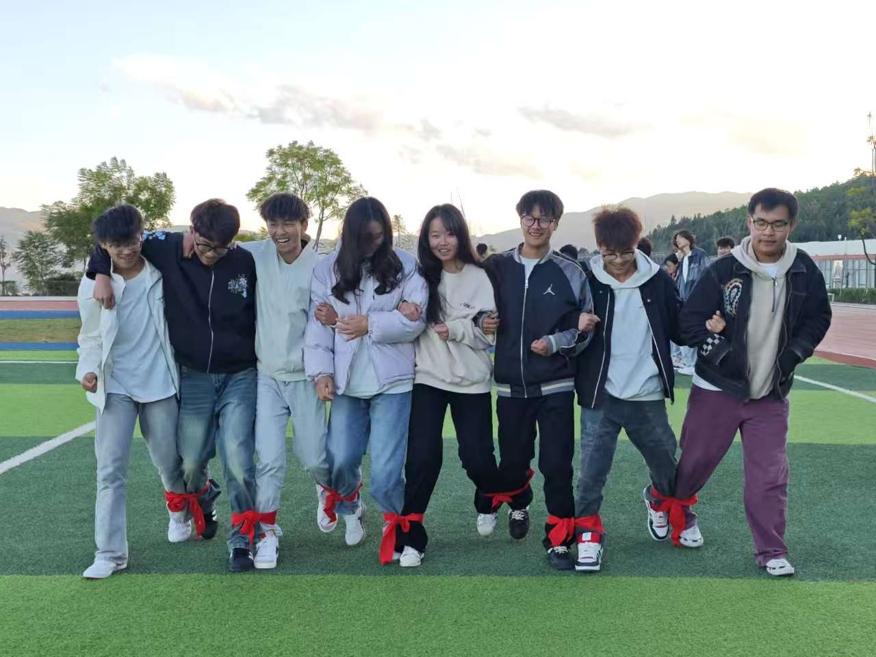 一条绳,多条腿,心连心。