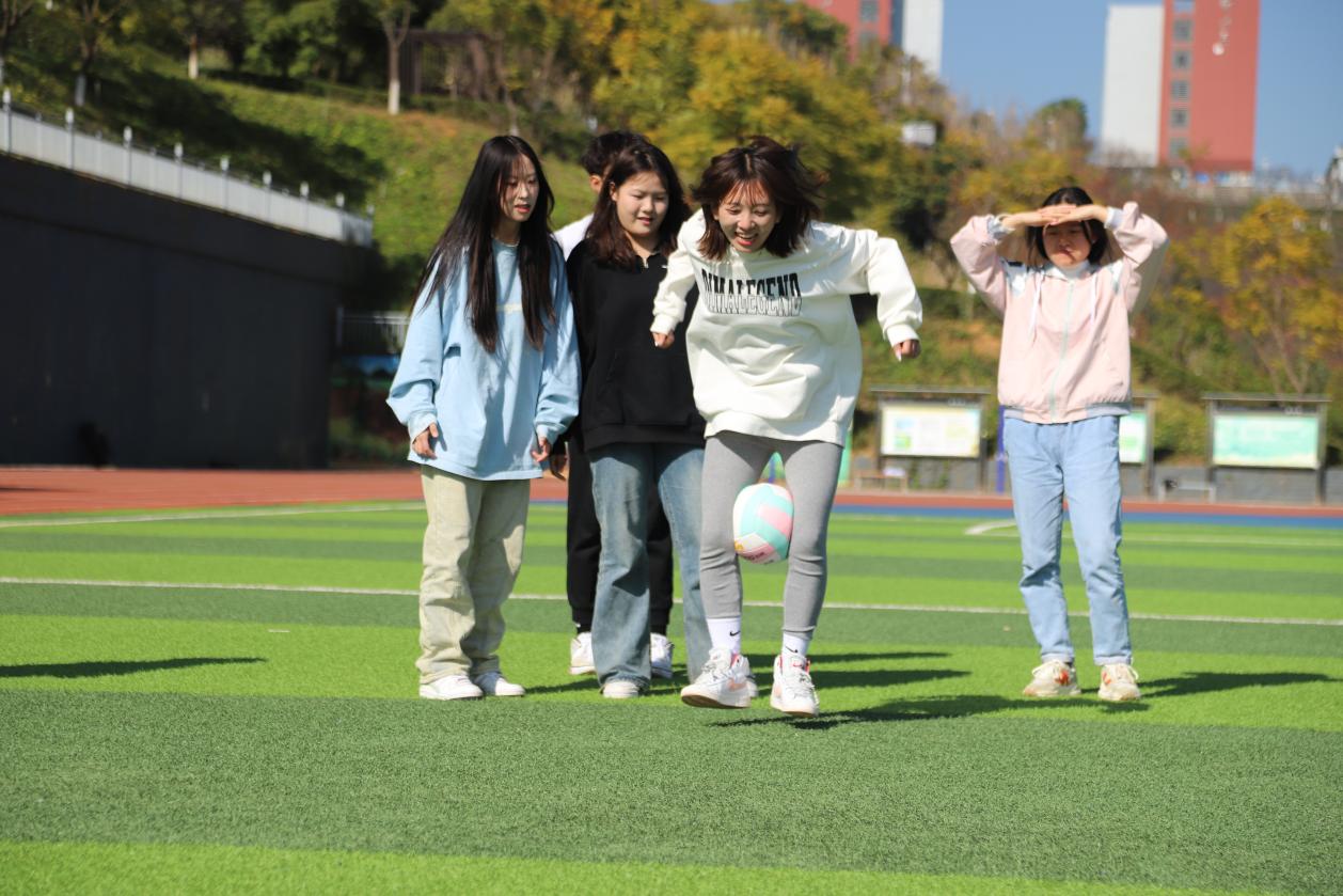 我院学子迎着暖阳,
