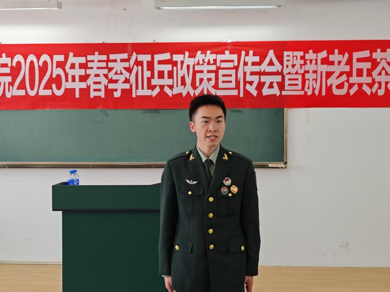 为帮助学院学生深入了解参军入伍的最新政策,激发广大学子参军报国的热情,BEAT365英国官网于3月12日下午在崇实楼602开展“征兵政策会暨新老兵茶话会”活动。老兵、新兵家长、23级有意向入伍的学生、入党积极分子参加此次活动。