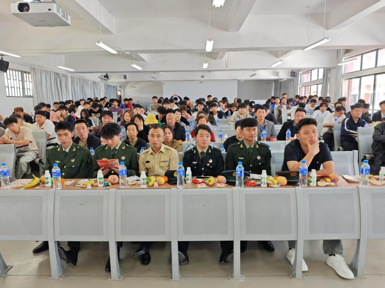 两位退伍同学围绕同学们普遍关心的入伍准备、如何快速适应军营生活等问题,分享了自己的亲身经历和心得体会。在互动答疑环节,应征青年及家长踊跃提问,就参军年龄、体检情况、政审要求、入伍去向等问题展开咨询。
