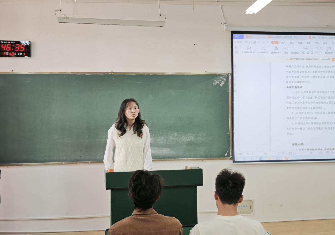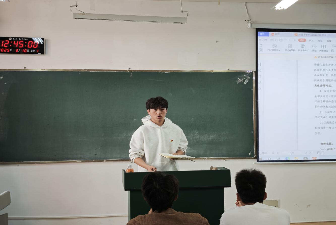 在会上,杨珍妹老师首先对3月份的团日活动做出了详细的规划。她强调,为确保活动的广泛参与度,全体同学都需要积极参与进来。活动结束后,各班级必须严格按照规定的时间和要求提交活动材料。为了充分调动同学们的积极性她鼓励大家创新活动形式,丰富活动内容同时,杨老师还部署了本月即将开展的其他工作。她指出对于退伍或休学后复学的团员,团支书要及时更新班级团员材料,以确保团员信息的准确性和完整性。此外,本月还将开始举办“挑战杯”赛事、篮球赛和足球赛,青马班课程、晨读晨练等活动也将如期进行,希望各班团支书、各部门能够积极做好相关的和组织工作。
