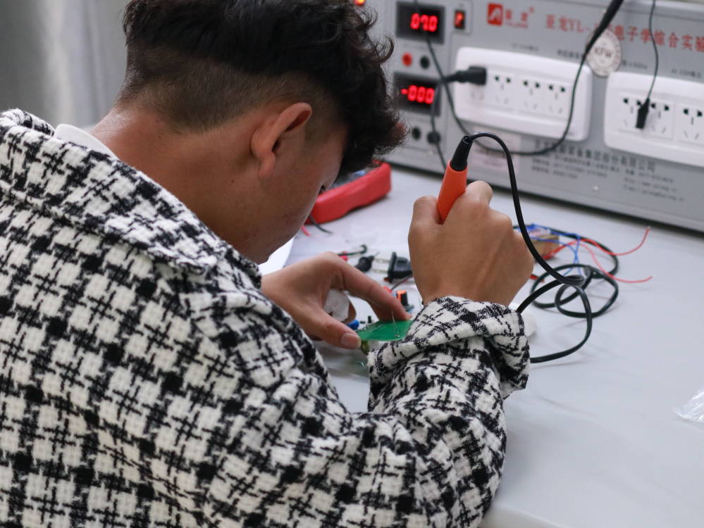 本次竞赛内容包含电子电路设计与焊接调试、C语言编程、电子产品印刷电路板设计三大部分,竞赛采用团体(每队3人)的形式开展,竞赛时长2小时。比赛期间,各支参赛队选手沉着应战、各展所长,过程节奏紧凑、秩序井然、精彩纷呈,参赛选手展现了良好的心理素质和精神风貌。