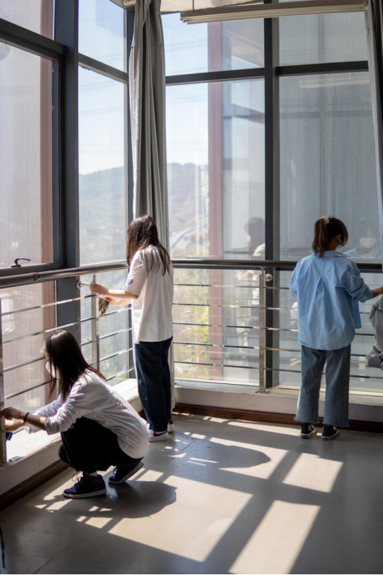 活动开始,由团总支副书记王正当对志愿活动做出详细安排,学生干部刘师安、蒋枘兵、李维接、王正当、曹文涛分别带领各部门志愿者们对学校图书馆各个楼层进行打扫。在活动过程中,为了给大家营造安静的学习环境,志愿者们在打扫过程中尽量保持安静,不影响其他同学学习。大家分工明确、积极参与、认真细致,有的拖地、擦玻璃,有的整理书架,摆放桌椅,所有成员各司其职,紧密配合,各项工作有条不紊地有序进行。本次志愿活动取得圆满成功,并得到了学校师生的一致好评。活动结束后,志愿者们在图书馆门前合影留念。