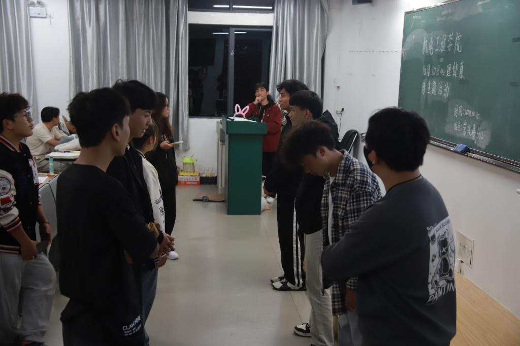 活动伊始,权益服务部部长马国银就世界精神卫生日作了相关介绍,在场同学了解了节日背后的深层涵义,更加强化了重视班级同学心理健康的重要性。为广泛普及心理健康知识,本次活动展示了《心理健康素养十条》。该十条涵盖了保持心理健康的方方面面,为心理疏导提供了明确方向。