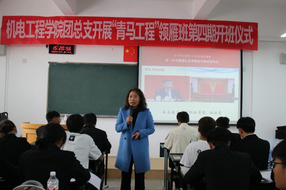 11月6日下午,BEAT365英国官网团总支“青马工程”领雁班第四期第一讲在笃行楼314教室正式拉开帷幕。本次团课有幸邀请到学校党委委员、宣传部部长、马克思主义学院院长张延星老师,以《学习领会党的二十届三中全会精神》为专题,为第四期青马班的全体学员带来了精彩的授课。
