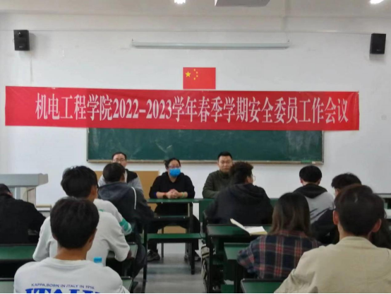 会议开始,安全专员王亚文老师介绍了本次安全会议出席的领导老师,说明了本次会议的主要目的和会议议程。接着,他就后疫情时期的请销假制度、校级校规、春季疫病特点、防溺水、防范电信诈骗等方面进行了细致的讲解,并对本学期的安全工作作出安排部署。他要求各班安全委员在新学期要树立安全宣传主体责任意识,要及时向班级同学普及电信诈骗、校纪校规、交通安全、宿舍安全等相关知识,要及时报送一日三检情况,及时反映班级同学外出喝酒、打架闹事、外出阳宗海游玩、游泳、垂钓等违规违纪情况,要鼓足干劲,努力做班级同学的安全领航人,做同学大学生活的护航员。