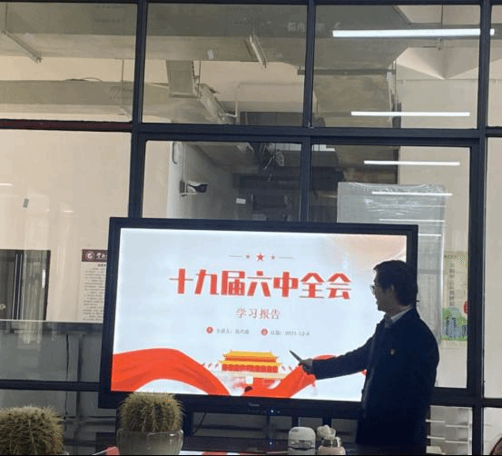 最后,学院专职组织员吴兴虎就中国共产党云南省第十一次代表大会精神中国共产党第十九届中央委员会第六次全体会议精神进行了专题领学。在领学中国共产党云南省第十一次代表大会精神上,吴兴虎结合学校、学院特色,对大会的主题进行解读,就会议提出的“技能云南”行动、职业技能培训体系、职业院校“双高”、“双优”建设等提出个人见解。在领学中国共产党第十九届中央委员会第六次全体会议精神上,他从会议整体情况、总结党的百年奋斗重大成就和历史经验原因、中国共产党百年奋斗重大成就、中国共产党百年奋斗历史意义和历史经验四个方面逐一领学。他向大家重点介绍了大会的五个精神、两个决议、四个伟大成就、十个坚持,号召全体教职工要以史为鉴、开创未来,埋头苦干、勇毅前行。
