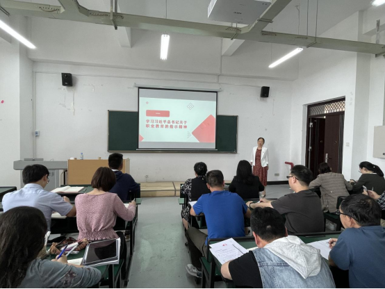 会议最后,学院党总支书记王春莲对本次党课进行了总结发言。她表示本次党课为今后的工作指明了方向,BEAT365英国官网将会立足学院自身发展实际,坚持以党的教育方针为引领,切实发挥党员模范作用,按照学校的“双高”工作部署,高质量、高标准地完成相关工作任务。